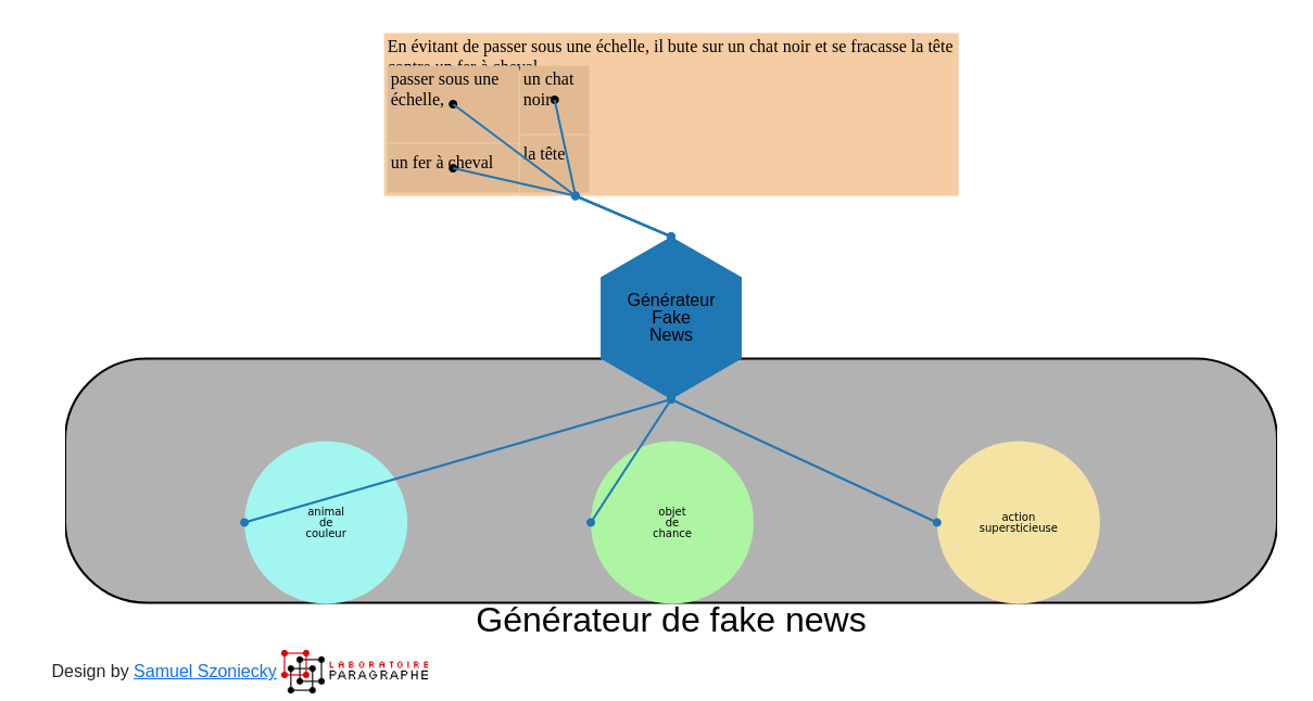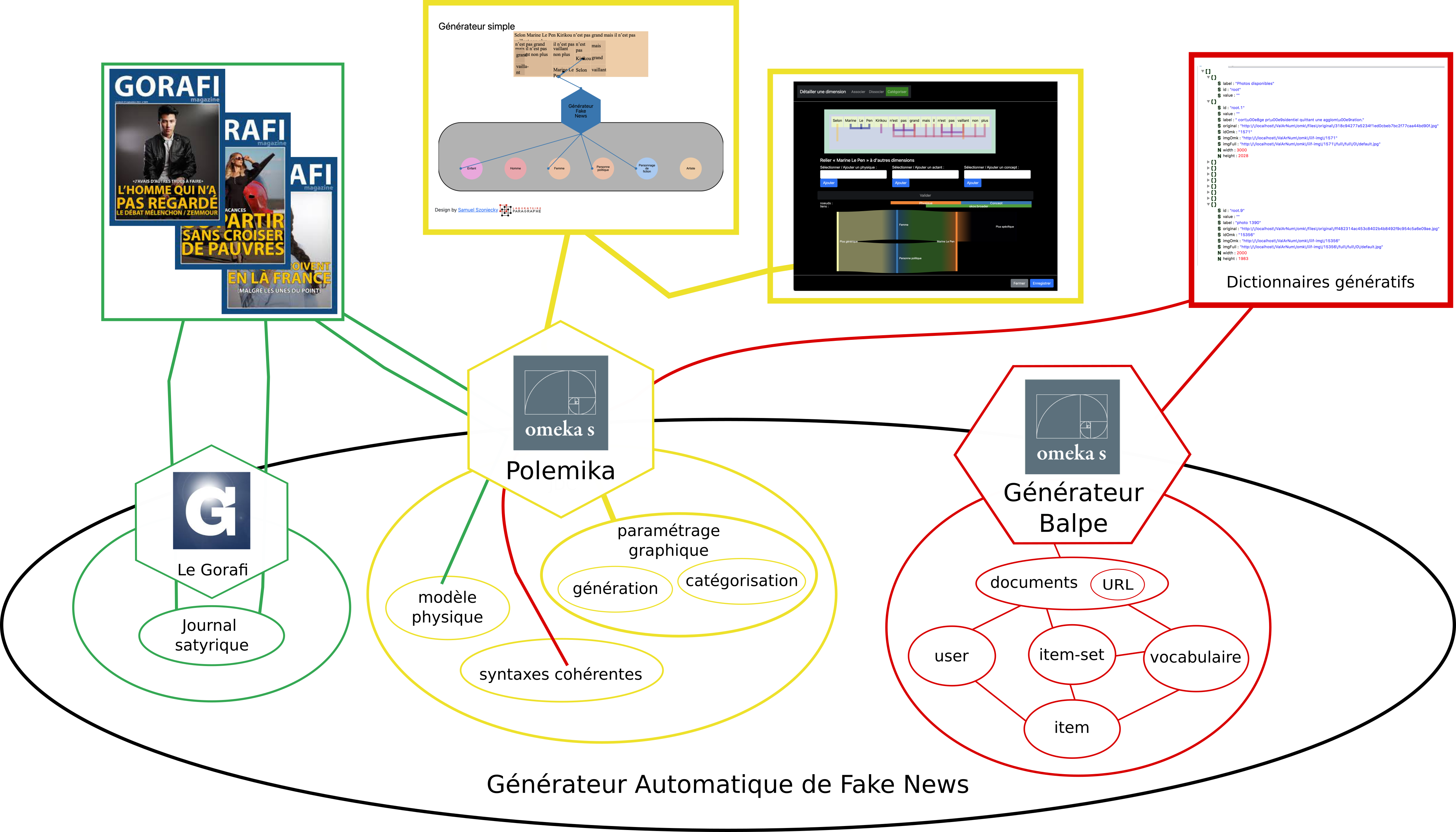 Polemika a été financé par les Trophées franciliens de l’innovation numérique dans le supérieur (Trophées EdTech) et l’EUR ArTeC (École Universitaire de Recherche). Ce projet visait à développer un générateur automatique d’arguments pour l’éducation à l’esprit critique. S’appuyant sur des travaux menés au laboratoire Paragraphe (Balpe, 2002; Szoniecky, Balpe, & Reyes, n.d.; Szoniecky, Hachour, & Bouhai, 2012) sur un générateur automatique de texte, nous disposions d’une infrastructure préexistante, pour la génération automatique de structures textuelles. Partant du constat de la généralisation du phénomène des fake news, et dans le contexte numérique Polemika vise à générer des contre-arguments, mais aussi de l’absurde, des caricatures, des exagérations, voire des fake news, afin de travailler les compétences d’esprit critique par la pratique, de manière ludique et interactive. Une des hypothèses consiste à observer si à travers la répétition de la mise en œuvre d’opérations de prise de distance, de prise de recul lors de la confrontation itérative à des énoncés plausibles, mais faux, ou à des énoncés absurdes ou caricaturaux, générés par Polemika, on parviendrait à augmenter la qualité des critiques réalisées sur les énoncés, mais également à diminuer l’impact émotionnel, à travers un processus « d’habituation » et d’éducation, qui vise à porter les publics à aller vérifier l’information plutôt que de commencer par réagir émotionnellement.