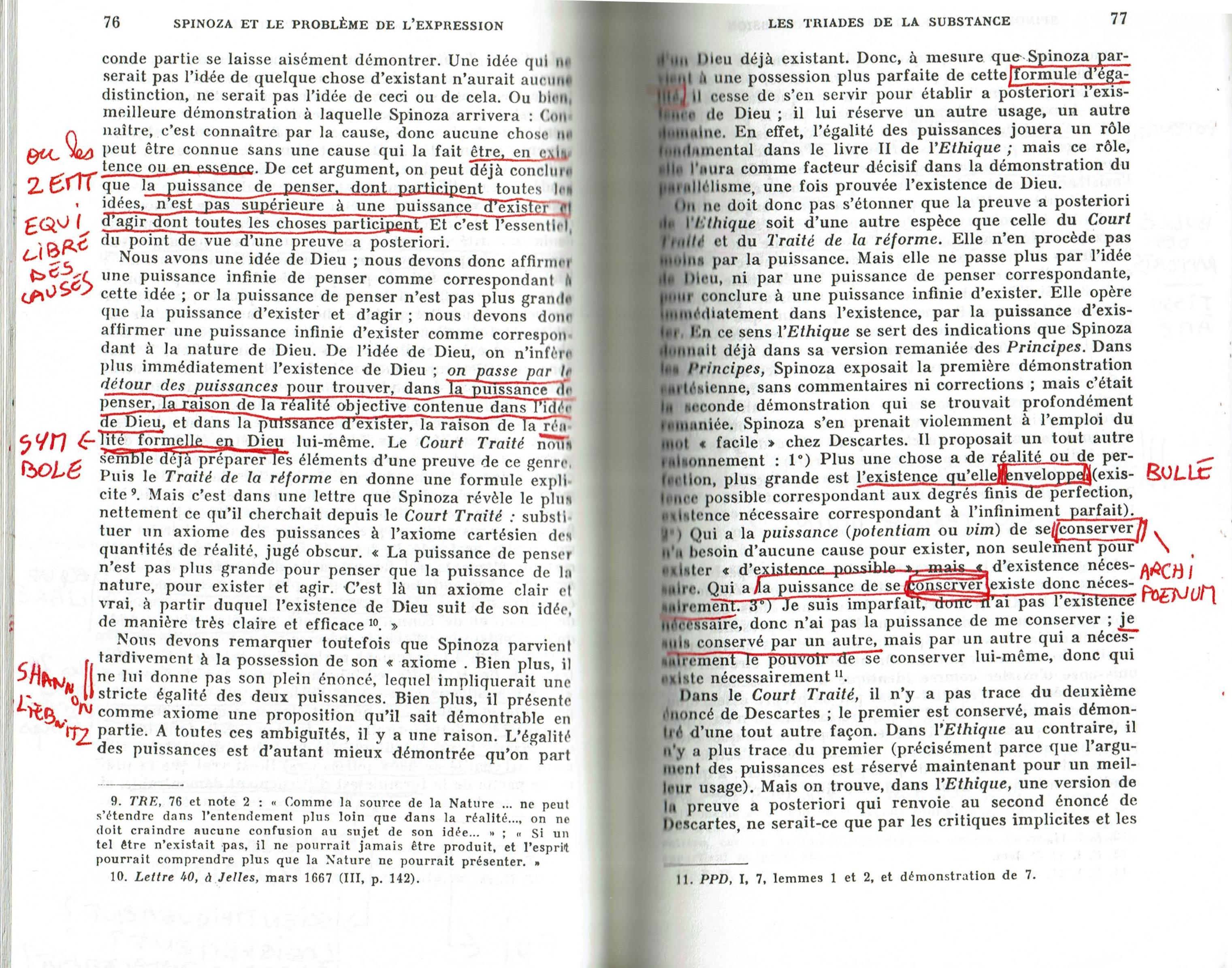 Cette première approche de mon positionnement scientifique pourrait être plus précise en interprétant la position de chaque personne dans ce diagramme suivant mon parcours scientifique. Mais plus encore, cette représentation de l’importance des personnes pourrait être calculée différemment en incluant les notes que je prends sur les articles publiés par exemple sur la plateforme Cairn.info ou sur HAL en incluant de nouvelles ressources issues de ma base de connaissances33, mais aussi les notes écrites sur du papier ou directement dans les ouvrages Figure 6.5 en les annotant avec les outils de description d’image d’Omeka S34..