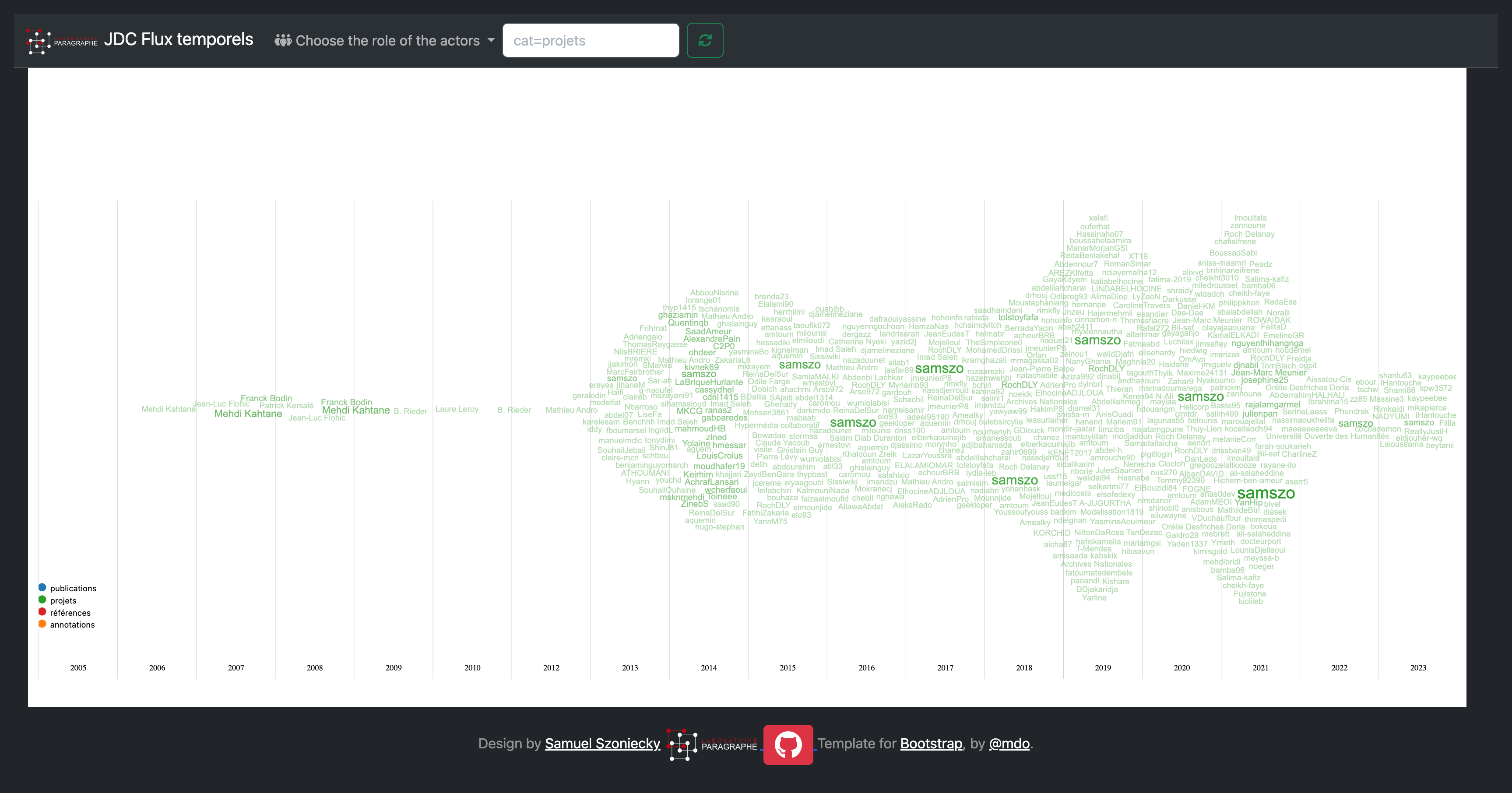 Nous avons adapté ce diagramme proposé originalement par Huyen Nguyen https://github.com/iDataVisualizationLab/WordStream pour mieux piloter les données et leurs visualisations. Le code du module que nous avons développé est ici : https://github.com/samszo/HDR/blob/main/docs/modules/streamWords.js↩︎