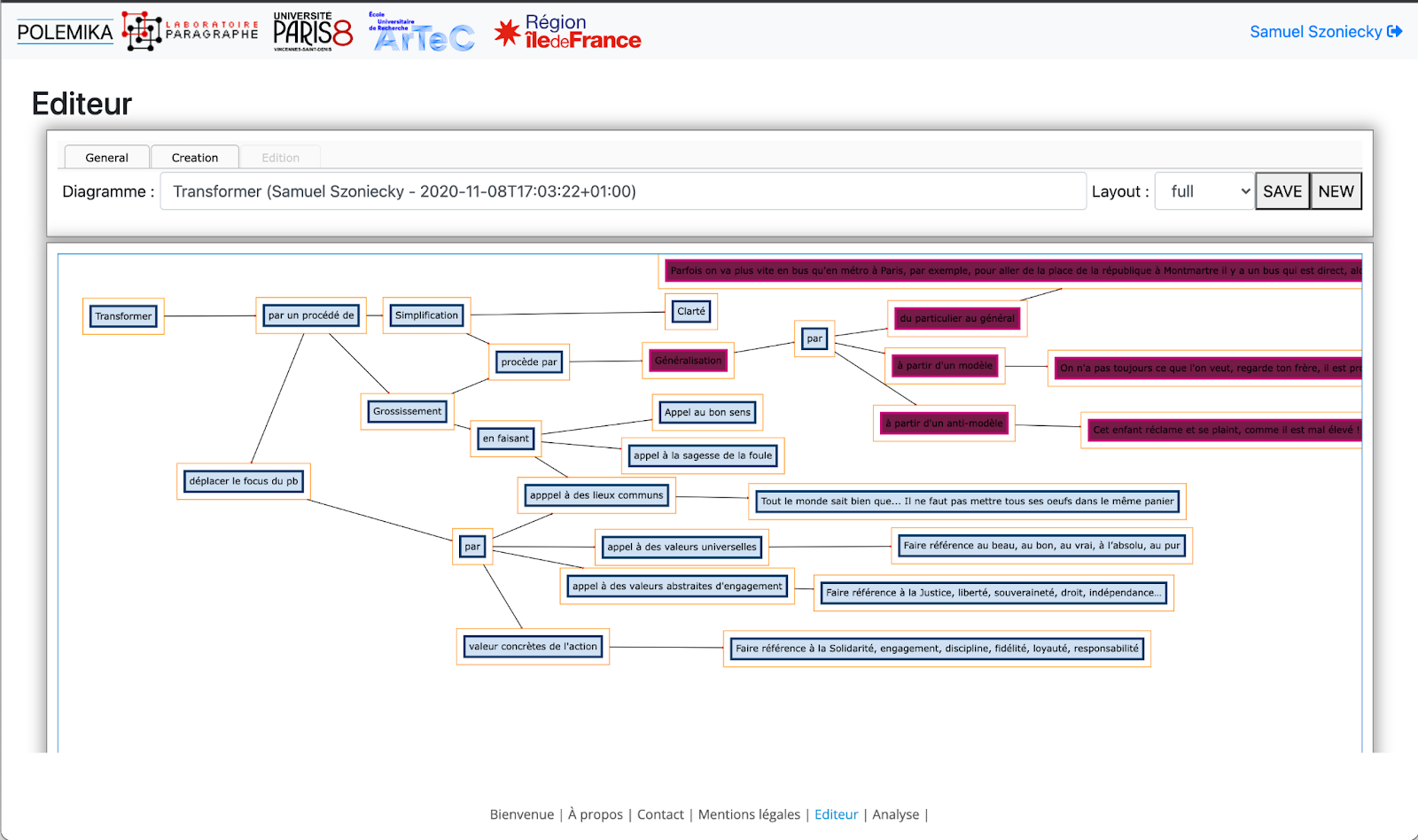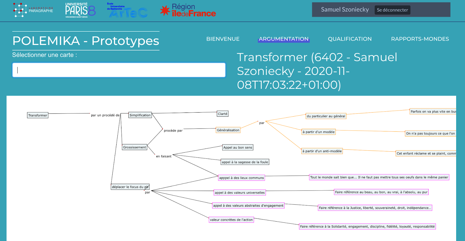 Afin de paramétrer le plus finement possible les générateurs à partir de nos hypothèses de recherches, nous avons conçu et développé des outils pour la cartographie des arguments.