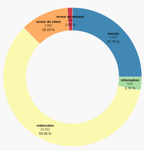 La part des publications (bleu) est très petite par rapport aux autres. Ceci correspond tout à fait aux principes de référencement des sources dans une publication universitaire puisque pour un article publié, il y a en moyenne une dizaine de références.
