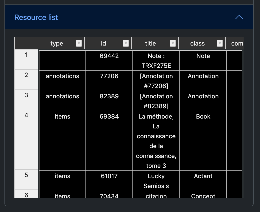 > le writer ici :https://github.com/samszo/Omeka-S-module-JDC/blob/master/src/Writer/AbstractComplexityWriter.php↩︎La liste des correspondances est disponible ici : https://github.com/samszo/Omeka-S-module-JDC/blob/master/src/View/Helper/JDCViewHelper.php#L39↩︎